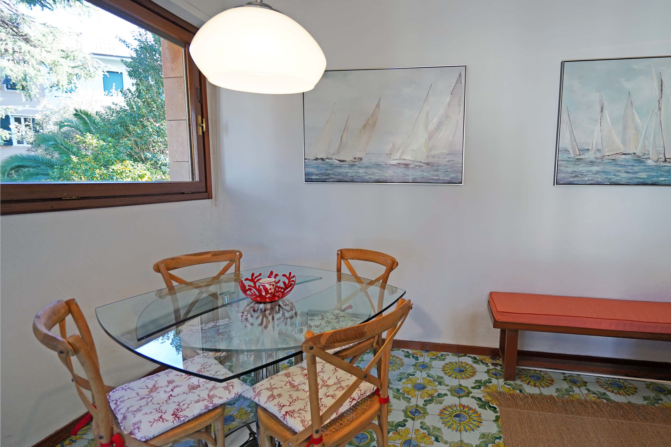 Appartamento suggestivo con ascensore sul Porto di Santa Margherita Ligure, arredato con elementi contemporanei e di antiquariato, con terrazzi al piano. Al suo interno presenta un ampio e suggestivo soggiorno-pranzo con terrazzo, cucina, camera da letto matrimoniale, 2 camere a due letti, 2 bagni, camera singola di servizio con bagno di servizio. (Attestato energetico in corso di esecuzione) Locazione uso abitativo.