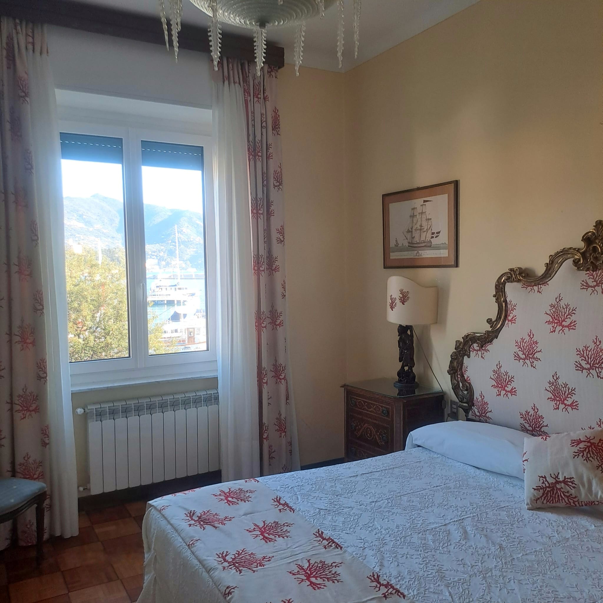 Appartamento con ascensore in un Palazzo d’epoca sul lungomare di Santa Margherita Ligure, affacciato direttamente sul Porto. Al suo interno presenta un ampio soggiorno-pranzo con balconi, cucina, 2 camere da letto matrimoniali, 2 bagni padronali, camera con due letti, camera di servizio con bagno. Arredato con mobili d’epoca. (Attestato energetico in corso di esecuzione) Locazione abitativa.